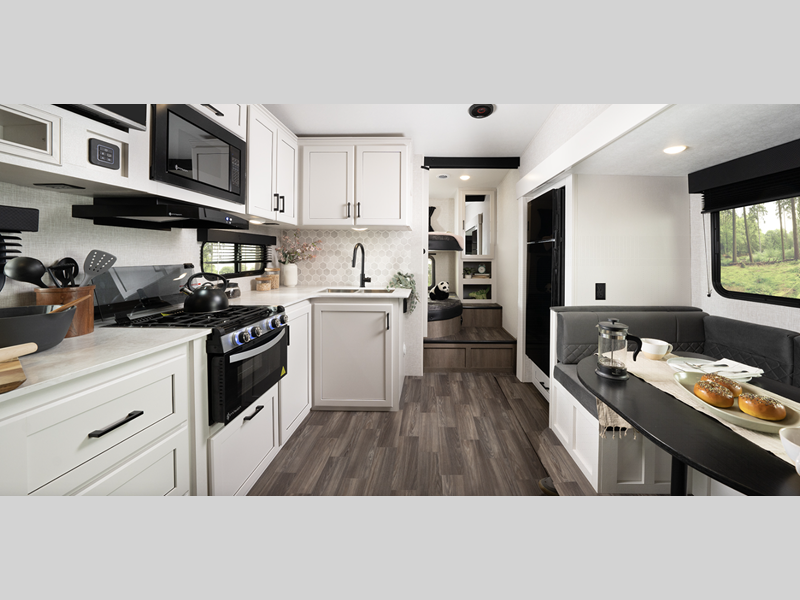 Sleeps 5 Slides 2 Length 29 ft 3 in Ext Width 8 ft 1 in Ext Height 12 ft 3 in Int Height 8 ft 5 in Interior Color Calli Linen Hitch Weight 1485 lbs GVWR 9500 lbs Dry Weight 7855 lbs Cargo Capacity 1645 lbs Fresh Water Capacity 52 gals Grey Water Capacity 82 gals Black Water Capacity 45 gals Tire Size ST225/75R15E Furnace BTU 30000 btu Available Beds Queen Refrigerator Type 12V Refrigerator Size 8 cu ft Cooktop Burners 3 Shower Size 30" x 36" Number of Awnings 1 LP Tank Capacity 30 lbs Water Heater Type Tankless AC BTU 15000 btu TV Info LR 40" 4K Ultra LED HD Smart TV Awning Info 16' Power w/LED Lighting Axle Count 2 Number of LP Tanks 2 Shower Type Standard Electrical Service 50 amp Solar Wattage 200 watts Similar Floorplans